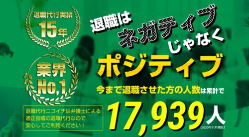 対応エリアも日本全国で、今まで退職させた人数は17939人(2020年11月現在)と実績は業界ナンバー1となっています。